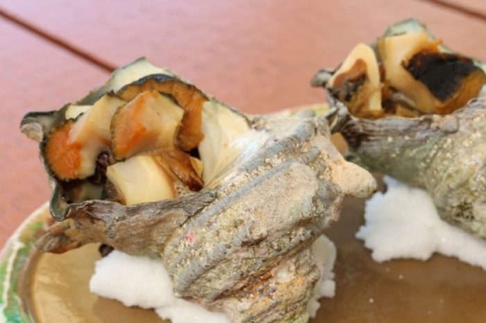2017/06/05今が旬!地物、南知多産!大粒さざえ! 大粒の粒揃いで1盛り750円!(5-6個入ってます!) ご自宅のグリルで簡単に焼く事ができます!BBQにも! もちろん、生きていますのでお刺身でも◎ 今日はつぼ焼きにしました。 作り方は簡単。一度海水程度の塩水で茹でて中身を取り出します。 刻んで適当な大きさに切って出汁で煮るだけです。実は簡単! 台座は荒塩に水を入れて握っただけです。 ちょっと、お料理屋さんみたいになります。