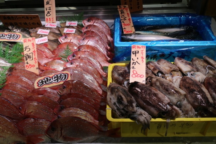 2016/04/02春の地魚祭り♪ 3枚おろし、お刺身用、煮焼き用の調理は無料! 先ほど〆たばかりの真鯛!鮮度抜群! 甲イカも〆たて! ザル盛りコーナーは早い者勝ち! 鮮魚コーナーは店内入って一番奥です!