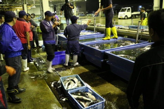 2015/10/16【今日の魚太郎】 トラフグの初セリ 本店水槽でプクプク… 出待ちです(笑) 真剣に品定め中です!初セリなので、いつもより気合い入ってます♪ どんどんセリ落とされていきますねー! 水槽付きトラックで本店水槽へレッツゴー。