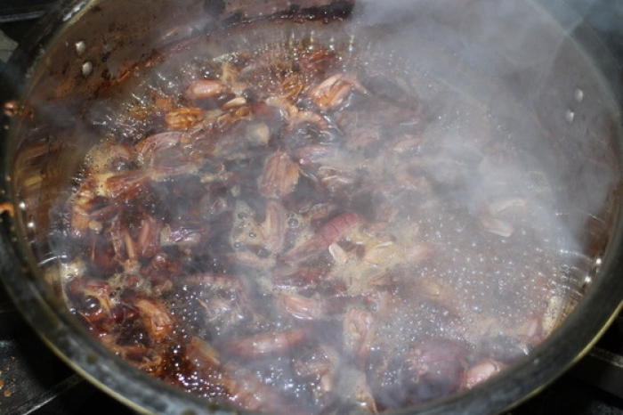 シャコを入れて沸騰してから5~7分程煮る