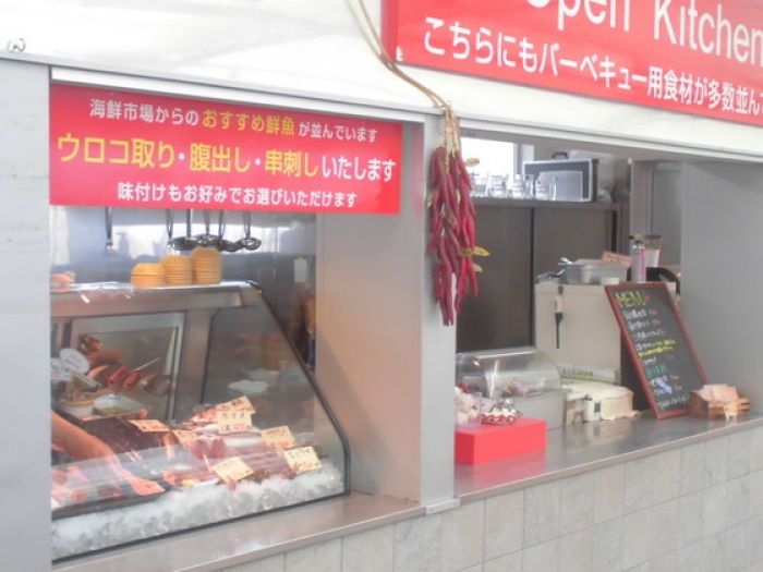 このオープンキッチンの地魚も下処理してくれるんですね