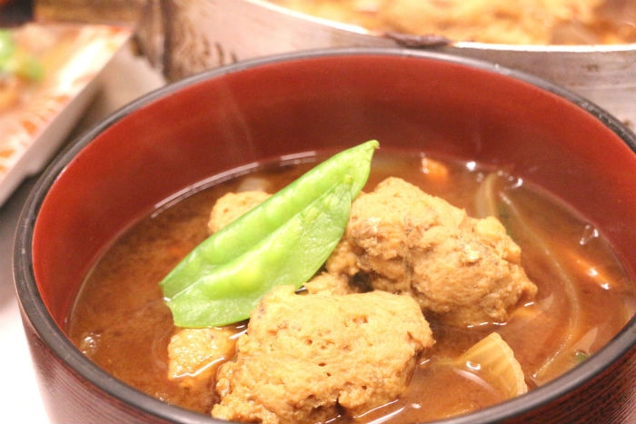 いつもの味噌汁につみれを入れるだけで立派な一品になります。