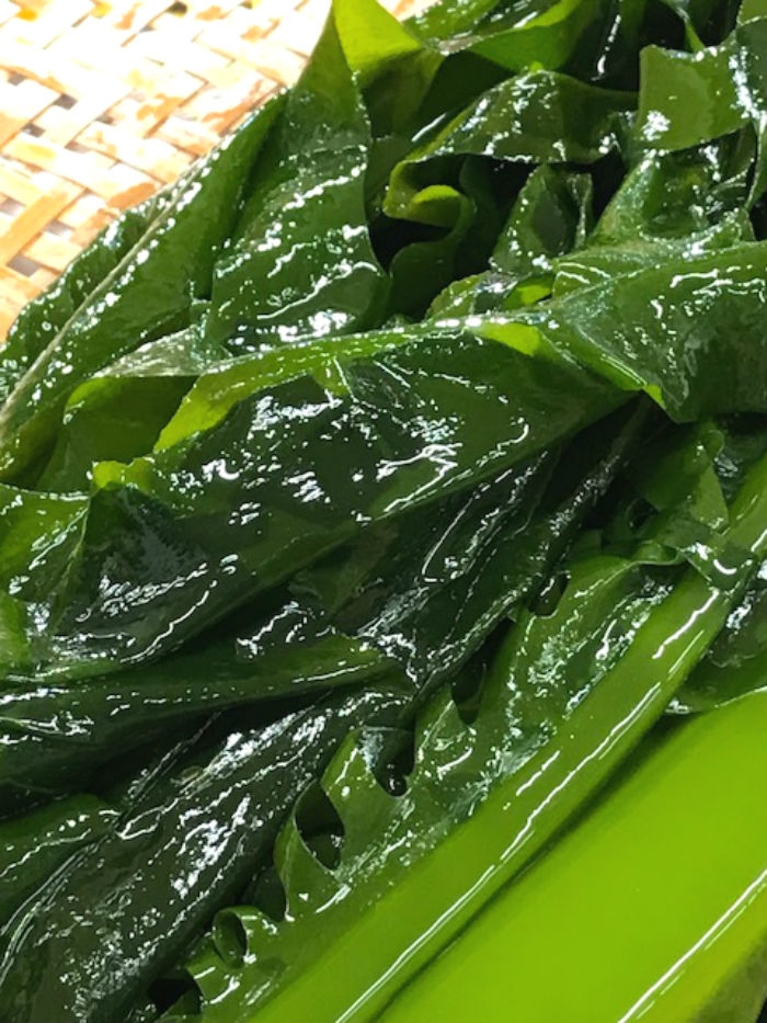 2018/03/21南知多の旬!生わかめが最盛期です! 茹でる前は茶色っぽい色味ですが… 熱湯でサッと茹でると鮮やかに!氷水で〆ると更に鮮やかになります。 ※画像は野沢菜ではないか?と指摘がありましたが「生わかめ」です! 「生わかめの酢味噌合え」 簡単で旨い!ザクザク食感がたまらない逸品です! 「生わかめの味噌汁」 乾燥わかめとは全く違う旨さです! 本日の対面鮮魚コーナー! 本日のカゴ鮮魚コーナー! 海藻類はこのコーナーであります! 鮮魚市場の商品は全て浜焼きBBQコーナーに持ち込み自由です!