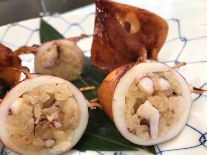 2018/08/04南知多の赤いかが鮮度抜群!旨い! スルメイカなどは食べごたえがあって味もよいのですが冷めると固くなる特徴があります。 それと比べ赤いかの特徴は火を入れても固くならず、冷めてもふっくら感を保ちます。 開店直後から「赤いか」の注文が殺到! 常に2人がイカを捌いてます! さて、本日は「なんちゃってイカ飯」を作ってみます… めんつゆでゲソを茹でて、その煮汁にご飯を投入して軽く混ぜます。 いかの胴体にぎゅうぎゅうにご飯を詰めて竹串で口を閉じたら煮ていきます。 (残り物ご飯で十分です) めんつゆに生姜を適量入れて10分程煮て完成! もち米も使わず、前日の残りご飯が活躍する便利で旨い料理です。 イカ飯はもち米を使い作ると時間がかかりますが、 この作り方ならパパッとできて抜群に旨いです。 それでは本日も従業員一同皆様のご来店をお待ちしております!