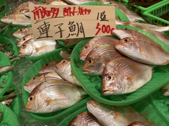 2021/02/05色んな料理が楽しめる、お値打ちな鯛~レンコ鯛~ 塩焼き、煮付け、鯛めしなどが一般的ですが オススメは洋風の調理、大きさが手頃なので、そのままアクアパッツァ、ブイヤベース、 水分が多いレンコ鯛は加熱してもしっとりした仕上がりで美味です!! 簡単で旨いのが 連子鯛のバターソテーです。新鮮な連子鯛を使えば、さっと加熱するだけでふんわり柔らかい食感を楽しめます。 火が通りやすいので時短で仕上がる、フライパンでさっと作れてしまう連子鯛の煮付けです。アルミホイルでぴったり落し蓋をし、少量の煮汁でさっと煮付けます。短時間で煮付けるので、身はふっくら柔らかい食感です。味は染みこんでいないので、身をほぐして煮汁をつけながらいただきましょう。お酒のおつまみにぴったりですよ 定番の鯛めしも炊飯器で簡単。昆布との相性が抜群なので、醤油は少な目で!