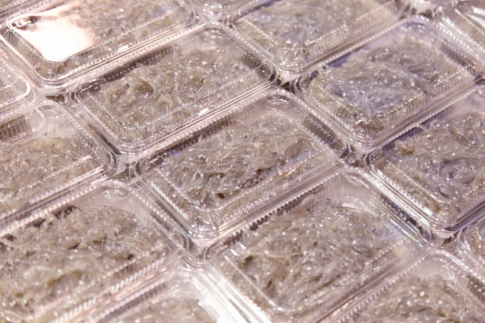 この水揚げされたばかりの【生しらす】を漁港のすぐそばでに茹で揚げ