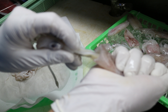 お刺身にするときはハサミで簡単!