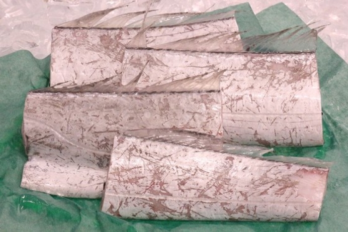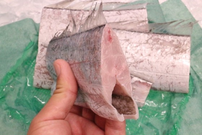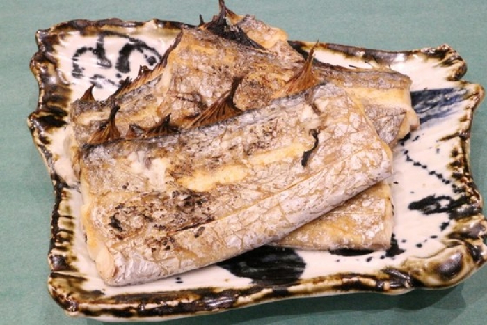 2017/09/23めちゃくちゃ脂のってます!南知多産 特大太刀魚(たちうお)! 南知多産/刺身用 太刀魚(特大)1尾1,000円! これは絶対食べてほしい!定期便の発送日だったら絶対入れてます! 約20cmの切身が4枚!最近煮付をよく作るので今回は塩焼きにします! 身の厚さが凄いですね。脂がのっているので身はピンク色です。 刺身、たたきで食べても極上の旨さですよ。 4切れにすると1人前250円です。 こんな極上の太刀魚がこの値段は考えられない位、お値打ちです! とにかく脂がのって身がふわっふわで柔らかいので、皿に移す際は要注意です。 私は不覚にも串から外す時に崩してしまいました… 本日も知多の地魚を多数取り揃えて皆さまをお待ちしております!