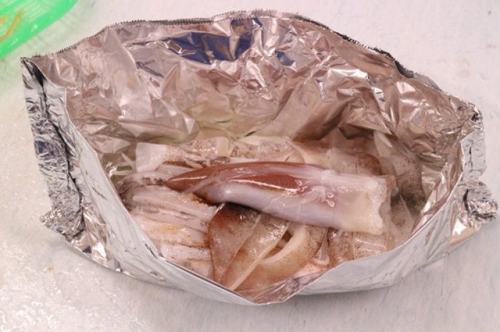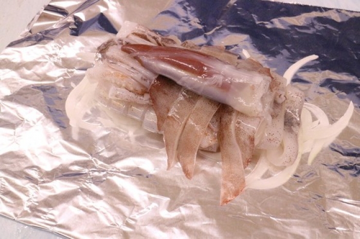2017/09/07スルメイカが獲れ始めました!ワタ入ってます! 南知多産 生するめいか 大サイズ/1杯500円 小サイズ/2杯550円! 小サイズと言っても、画像の通り十分なサイズ! ワタが大きいのは大サイズ!ですが、フライなどで使う場合は小サイズの方が食べやすいです! 料理は今からしてきます… してきました!今回は簡単で旨いホイル焼きにしました。 使ったのは小サイズ1杯です。 今回はワタを崩しながら食べたかったので丸ごと乗せて焼く事にしました。 包み方は両サイドを折り込み、上も同様に折り蓋をします。 イカの下には玉ねぎスライスを敷きました。 玉ねぎの水気で蒸し焼きになり、イカが固くなるのを防ぐと同時に甘味が出ます! この状態で中火で5分! タレは味噌を酒で溶いた物ににんにくをちょっと。 にんにくを入れると、ワタとの相性がグッと良くなります。 焼けた後に野菜を乗せて1分蒸らせば完成です。 豪快にかき混ぜて食べると最高に旨い!是非お試し下さい!