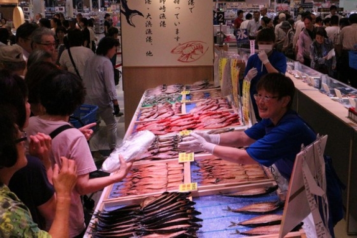 2017/07/14本日、魚太郎一宮店グランドオープン! 開店前から多数のお客様がお見えになりました 開店と同時に刺身コーナー、鮮魚コーナーが大混雑 一宮店も各店と同様、無料で下処理を承っております 毎朝、知多から朝獲れ鮮魚を直送します 毎朝、知多から朝獲れ鮮魚を直送します 人気の自家製干物コーナーは一日中大盛況でした 本日は南知多のイワシ漁があるので、午後から一宮店で販売します! 魚太郎だからできるスピード感と鮮度にご期待下さい! (毎回、飛ぶように売れてしまうので完売していたらごめんなさい。)