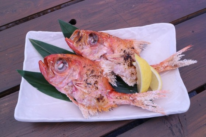 2017/05/27刺身用です!地物金目鯛がお値打ち! お刺身用 金目鯛1盛り500円!(4-5匹) 本日は塩焼きです。脂がのっていて、とってもジューシーで旨い! このサイズが1匹100円って考えると安い!高級魚ですよ。 金目鯛はとにかく旨みたっぷりのお魚なので、 お刺身、煮付け、余ったアラはアラ炊き、出汁取りにお使い下さい! 旨いですよ~。