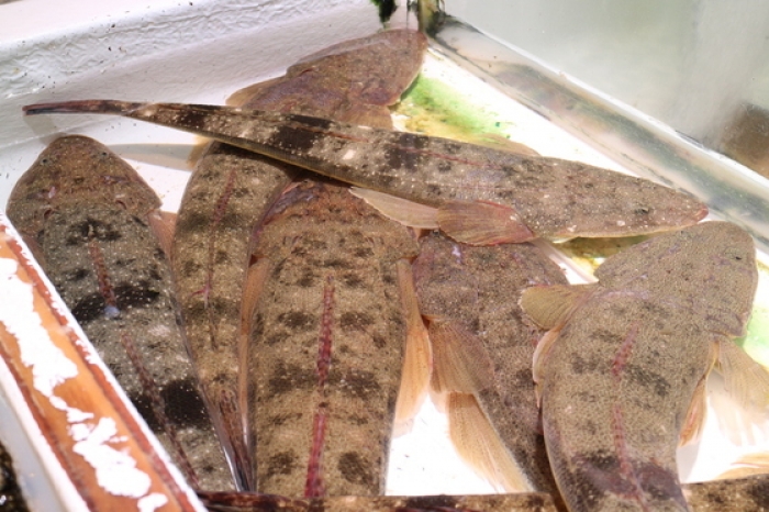 2016/05/31シーズン到来!知多のコチ! 水槽で元気に泳ぎまわるコチが一匹/1500円!ぷりっぷりのお刺身がお勧め! 上品な甘さとぷりっぷりの食感がたまりませんね♪ ※お刺身用に皮取りまで調理致しますので、スライスはお客様でお願い致します。 一匹でこの量のお刺身ができます!本当に贅沢ですね♪ アラも調理しやすいように切ってお渡ししております。 卵入っていました(^-^) コチのアラで作ったアラ汁はさっぱりと上品なお味になります(^-^) アラをご希望されないお客様もいらっしゃいますが、是非お持ち帰り下さい。 ご家庭でお料理しがやすいように切って洗ってからお渡ししております。 何より鮮度が良いので美味しいですよ(^-^) 今回はお味噌汁に入れただけですが、立派な一品になります! 鮮魚コーナーは魚太郎本店入って一番奥になります。 皆さまのご来店お待ちしております!