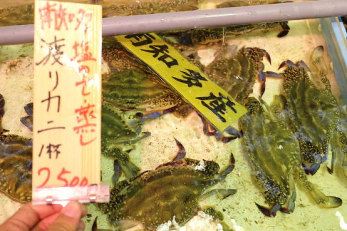 2016/03/25特大渡り蟹!子持ちです! 内子たっぷりでずっしり♪ 身入りだって抜群ですよ♪ 特大サイズはとっても貴重で入荷量も少ないです。 なので早い者勝ち!数量限定販売です♪ 1杯2500円!このサイズでお値打ち! 他店じゃ見かけないサイズですよ♪ 魚太郎知多本店、貝売り場で活かして販売中です(^-^)