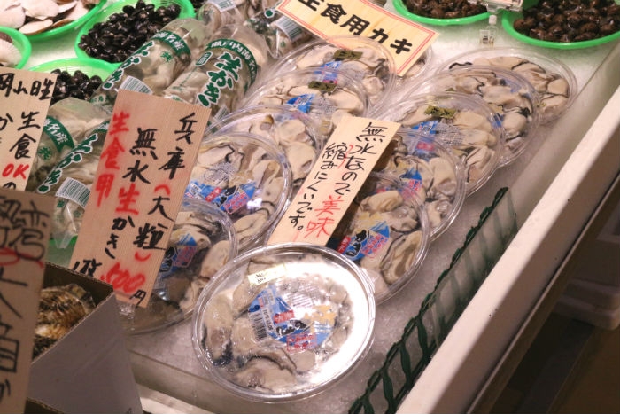 2018/03/07今が最盛期!生ガキが抜群に旨い! 1パックに大粒が10粒程度入っています。 殻付きカキもありますので、お好みでどうぞ! (身は断トツで兵庫県播磨灘産/大粒カキ 生食用1パック500円が大きいです) 軽く水で洗ってから刺身でどうぞ! この大きさ、厚み!今だけの贅沢です! 牡蠣は今月末位には再び身が徐々に細くなってきます。 フライにしても身が全く縮まりませんよ。 超濃厚で甘い味わいです。 鮮魚担当者もここ数年で一番旨い!と大絶賛でした! それでは本日も皆さまのご来店をお待ちしております!