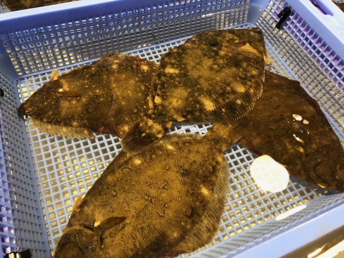 2019/06/04今が旬の藻カレイ!水槽で泳いでます! 身はとても綺麗な白身です。 旬の今は 高級魚、ひらめをも凌ぐ旨さです。 もちろん刺身で と思うのですが 地元では小さいサイズをあえて煮つけにして 楽しんでと、おすすめしています。 知多半島に お出かけの際は 是非お立ち寄りください。 旬を知って お値打ちに海の幸をご堪能下さい! 「今何が旨い?」など お気軽にお尋ねください