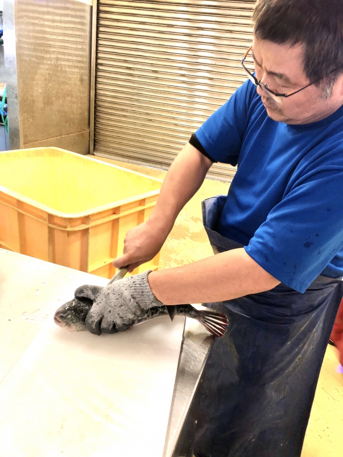 魚太郎では職人が全て手作りで、ふぐ一夜干しを作っています。