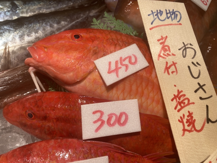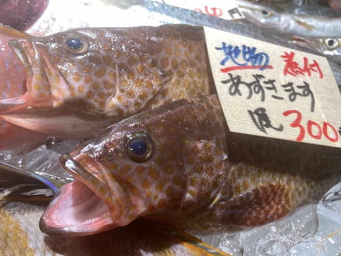 2020/09/01へんな魚!でも鮮度抜群!美味しく食べて! おじさん…ヒゲが特徴的です。癖のない白身です。いい出汁が出ます! セミホウボウ…大きな羽のようなヒレに固いウロコ、塩焼きにすると旨味が出ます! アズキマス…夏の高級魚。蒸し料理に最適なふわふわの身質。 ブダイ…ムニエルなどに最適。ブリンとした弾力の白身です。 タカノハダイ…斜めに縞模様、尾はドッド柄のファンキーなお魚。 野性味ある味わいは塩焼きがベスト(^^)/ ちょっと変わった、知らない魚に出会うのも、鮮魚市場の楽しさです。 美味しく調理する方法も、魚のプロにお任せ下さい(^^)/ 日によって水揚げは様々ですが、知多半島ドライブの際には 新鮮な魚貝類に合いに来てください(^^)/ 通販サイトでも販売しています