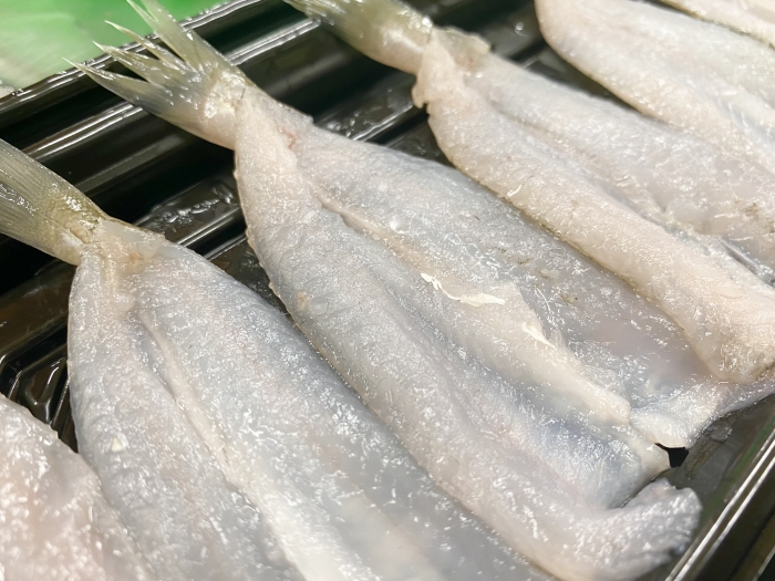 2021/07/30夏が旬の白キス! 鮮度が良くて輝いてる! 天ぷらもいいけど、やっぱり新鮮なキスは刺身も美味! 鮮度の良さは目にでます。そして艶があります。 卸してみると透明感のある白身でキレイ~ 淡白ながらも甘味・弾力があって!美味しい◎ 夏場は栄養を蓄えている時期なので、刺身の時は炙りにして 皮と身の間にある脂を味わうのもいいですね! 魚太郎では沢山水揚げがあるときは、獲れたてのキスで 丸干しを作って、出来立てを販売してます! フライパンで簡単に焼けますよ! 1盛300-500円程度で買えます! 天ぷらだけでなく、フライや唐揚げも旨いです(^^) 旨いもの屋台の海鮮丼のネタになったり、市場食堂でも海鮮ランチに使用します!