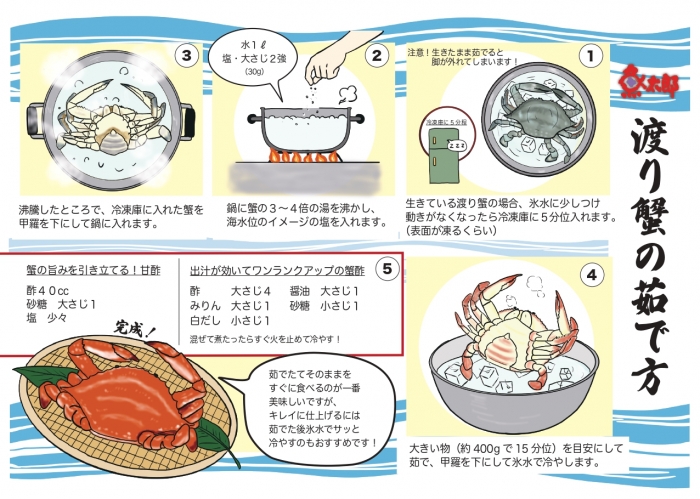 2021/08/01店舗配布レシピ公開します! バーベキューに欠かせない、大あさりの下処理と焼き方のコツ! 渡り蟹の塩ゆで&渡り蟹パスタレシピ! 意外と簡単(^^)/ 夏はオスの身入りが良く高値傾向なので、沢山、ワタリガニを使うなら小さ目が狙い目です! コノシロの酢締め!暑い夏にピッタリ(^^)/ 漁港すぐの豊浜に住む、売り子マーちゃんの 【タコの柔らか煮】