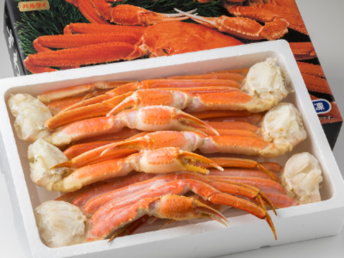 一般的なズワイガニと比べ、茹でた時に鮮やかに茹で上がりますので贈答に向きます。水揚げされ直ぐにボイルしていますので、自然解凍後そのままお召し上がりください!タラバガニと比べて旨み、甘味が強く身はしっとりとしています。