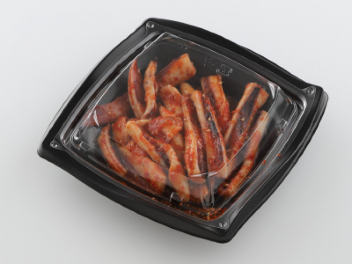 | 原材料 | イカ(ペルー)、果糖ぶどう糖液糖、唐辛子、おろしにんにく、しょうゆ、醸造調味料、ごま、玉ねぎ、しょうが、かつおエキス、カツオ風味調味料、食塩/調味料(アミノ酸等)、酸味料、増粘多糖類、ph調整剤、香料、パプリカ色素、乳化剤、(一部に小麦・いか・ごま・大豆・鶏肉を含む) |