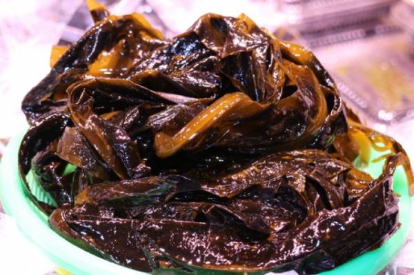 地元民はギュッと絞ったわかめにポン酢、胡麻ドレッシングをかけて食べています。