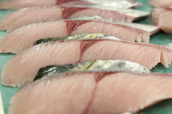 刺身用に3枚おろし、皮引きなどの下処理を