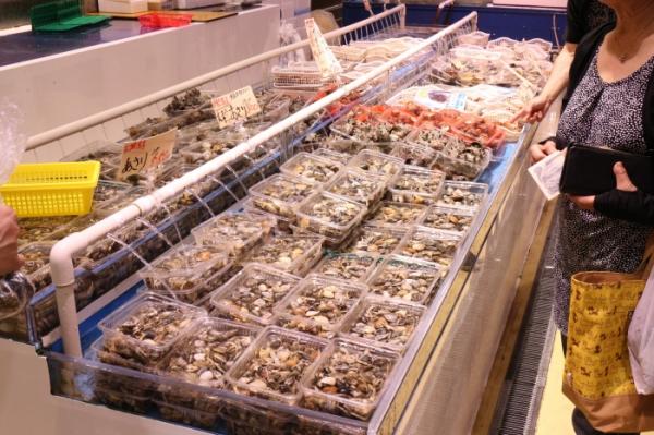 魚太郎に並ぶ、魚・貝・刺身・ひもの。どれも美味しそう~とテンション高め(嬉)