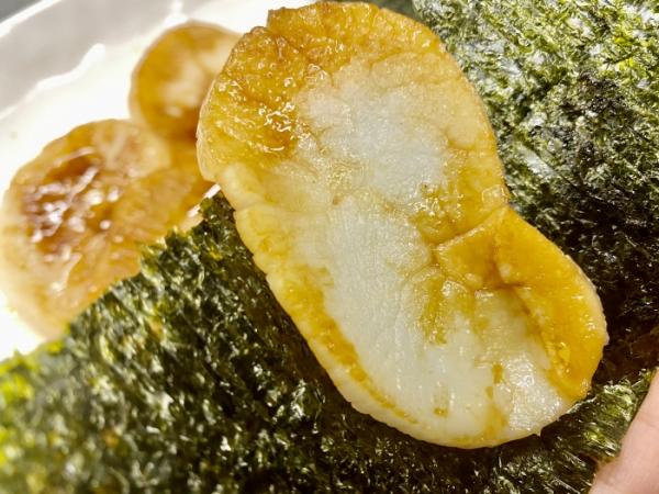 焦がし醤油で味付け、海苔で巻き、磯辺焼き風にして食べるのが定番です!